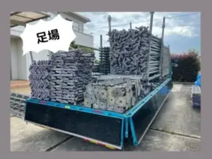 外壁塗装工事前にトラックに積まれた足場の骨組みです。
